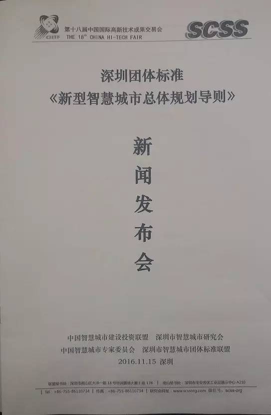 11月15日上午10:00,第十八屆中國(guó)國(guó)際高新技術(shù)成果交流會(huì)前一天,深圳市智慧城市團(tuán)體標(biāo)準(zhǔn)聯(lián)盟在深圳會(huì)展中心5樓玫瑰廳召開(kāi)深圳團(tuán)體標(biāo)準(zhǔn)《新型智慧城市總體規(guī)劃導(dǎo)則》新聞發(fā)布會(huì)。會(huì)議由研究會(huì)執(zhí)行會(huì)長(zhǎng)張曉新教授主持,國(guó)家標(biāo)準(zhǔn)化原黨委書(shū)記王金玉研究員致詞?!秾?dǎo)則》編制聯(lián)盟秘書(shū)長(zhǎng)李林教授作該導(dǎo)則宣講,該《導(dǎo)則》是《智慧城市系列標(biāo)準(zhǔn)》的重要組成部分,并在11月5日通過(guò)國(guó)家級(jí)專家評(píng)審。《導(dǎo)則》規(guī)范了新型智慧城市總體規(guī)劃涉及頂層規(guī)劃、專項(xiàng)規(guī)劃、工程設(shè)計(jì)三個(gè)階段之間規(guī)劃設(shè)計(jì)銜接的邊界和設(shè)計(jì)深度要求,提出新型智慧城市總體框架、知識(shí)體系規(guī)劃、建設(shè)體系規(guī)劃、信息資源規(guī)劃、分級(jí)分類大平臺(tái)、大數(shù)據(jù)規(guī)劃的范圍、規(guī)范和要求。李林教授在會(huì)后接受深圳電視臺(tái)記者采訪,并將在今晚6點(diǎn)半深圳衛(wèi)視新聞?lì)l道播出,歡迎大家關(guān)注收看。